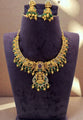 Traditional short necklace with green and pink stone