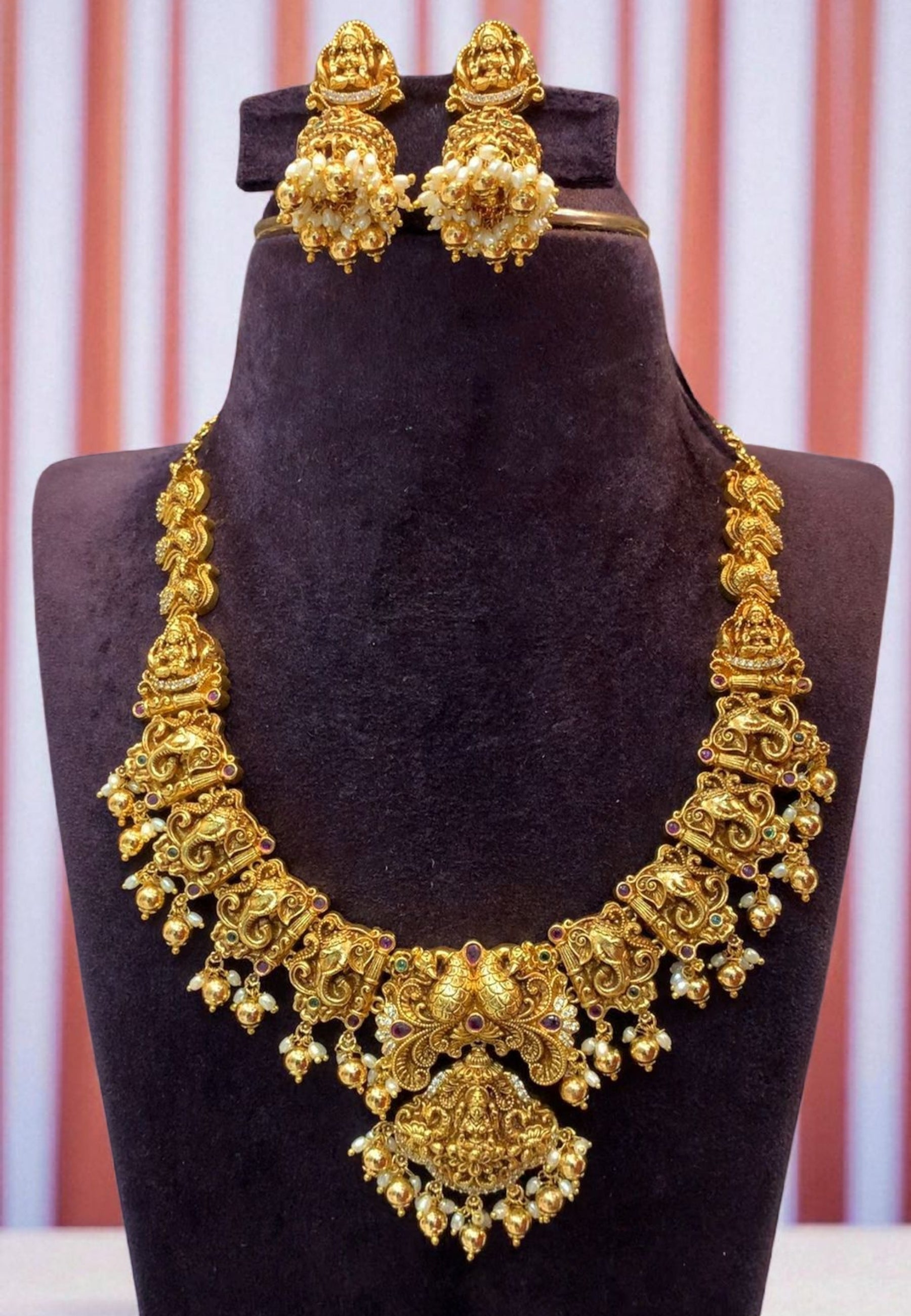 Beautiful short kanti necklace with nakshi finishing and without god Motive