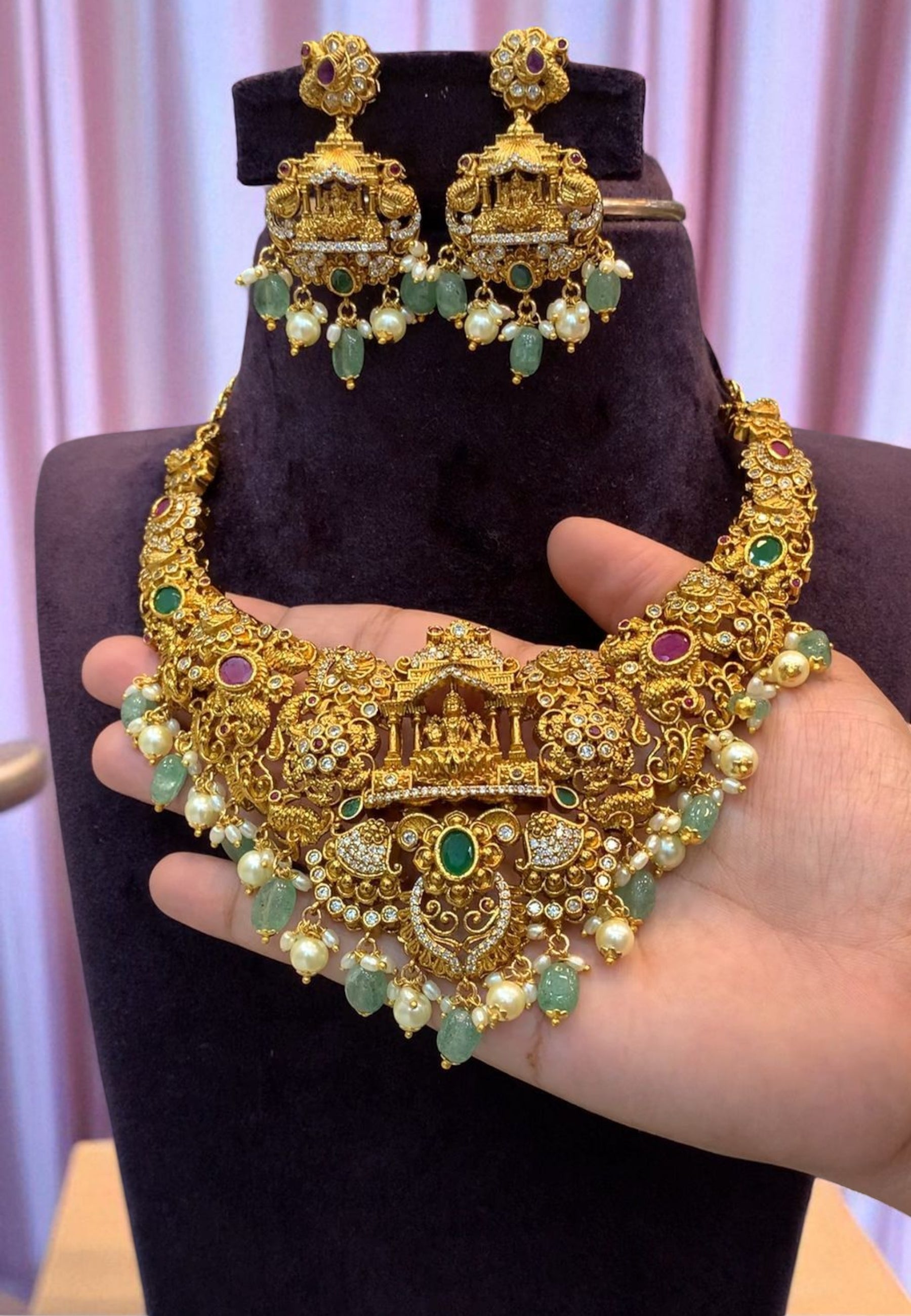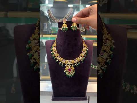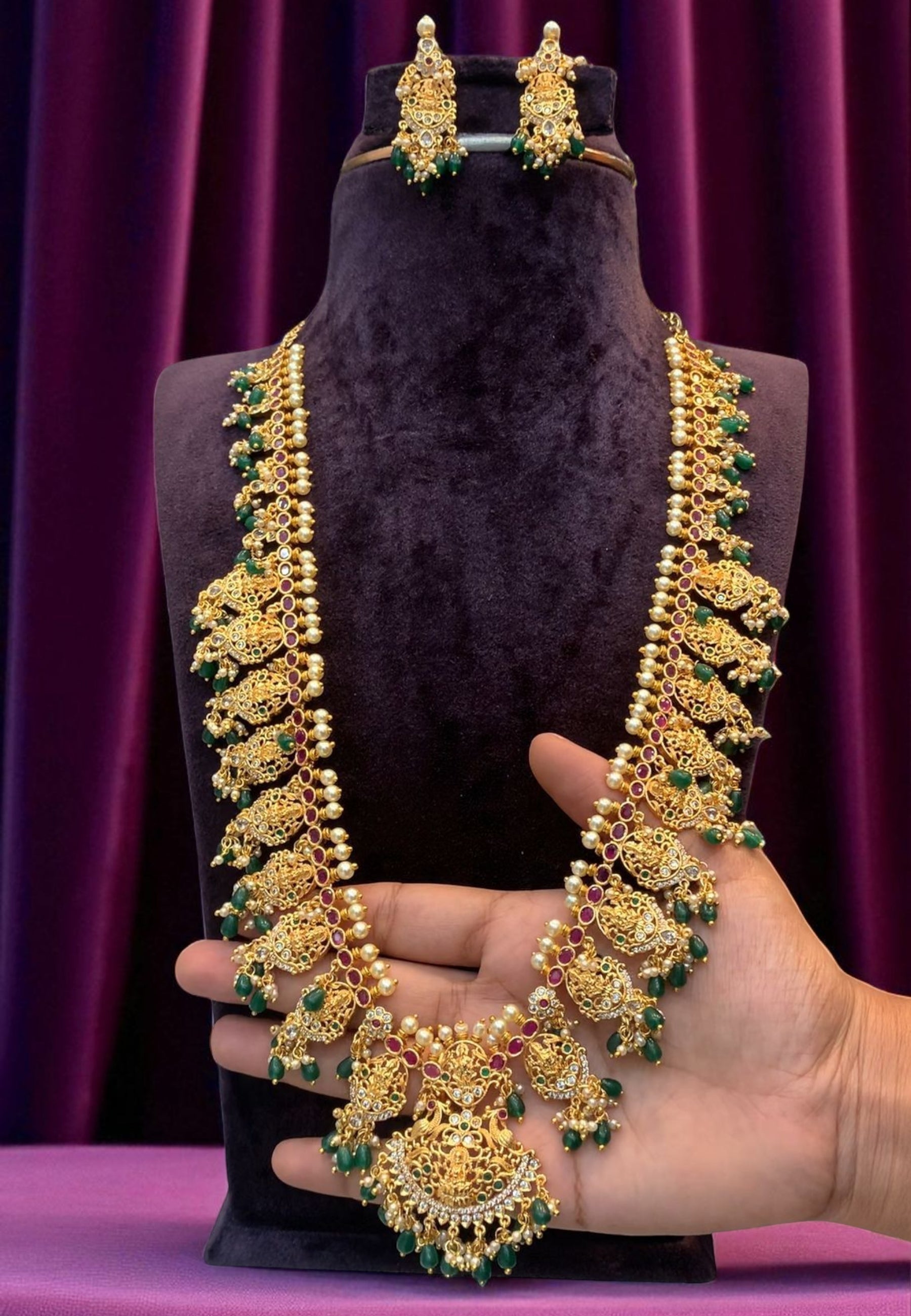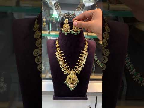 Beautiful long nakshi haram with green stone and guttapusalu hangings