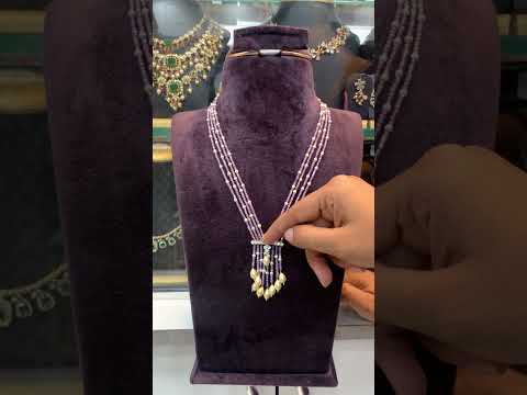 Beautiful guttapusalu long haram with green and pink stone