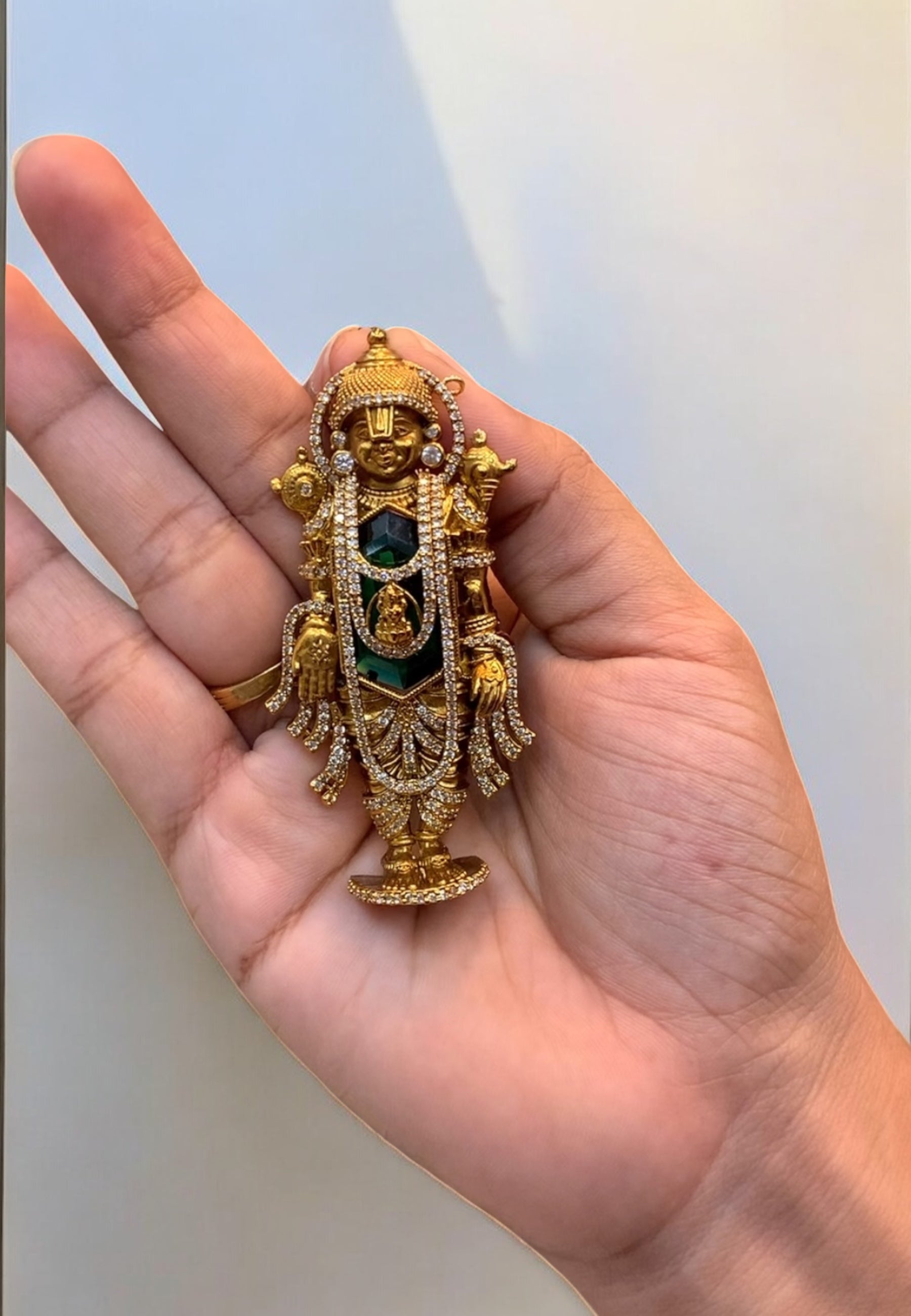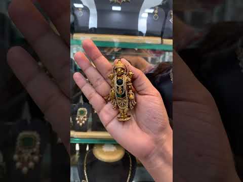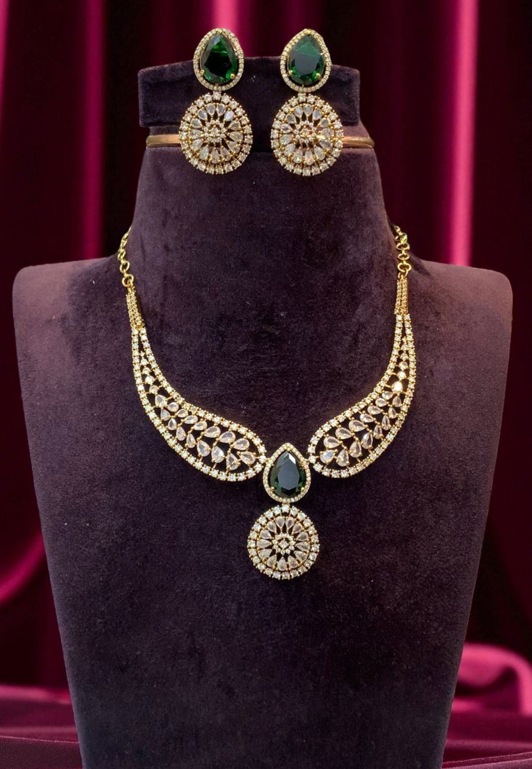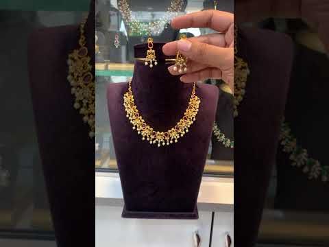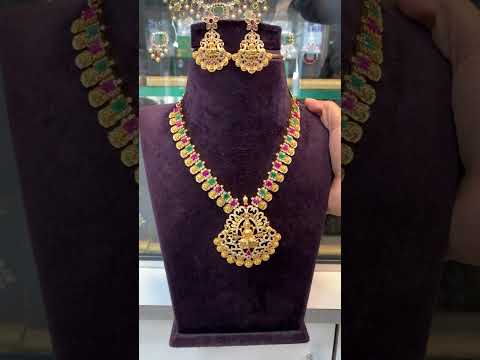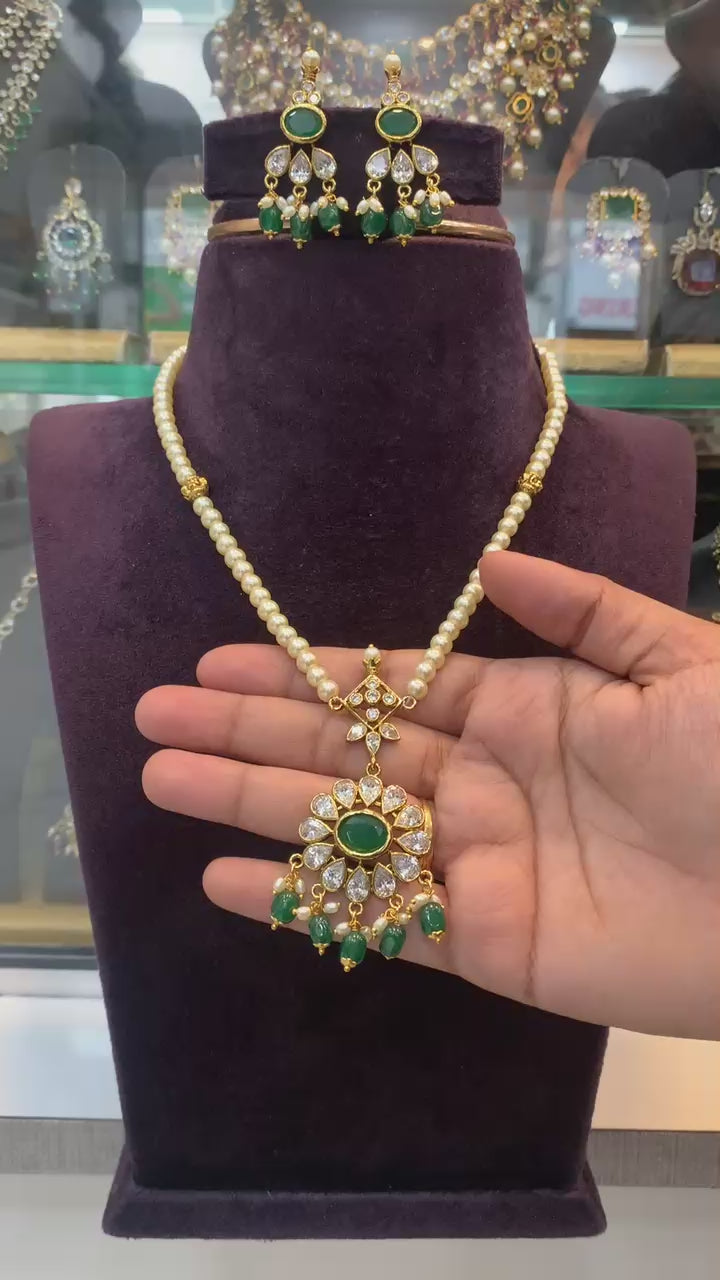 Beautiful short necklace with green stone and Laxmi Devi motive