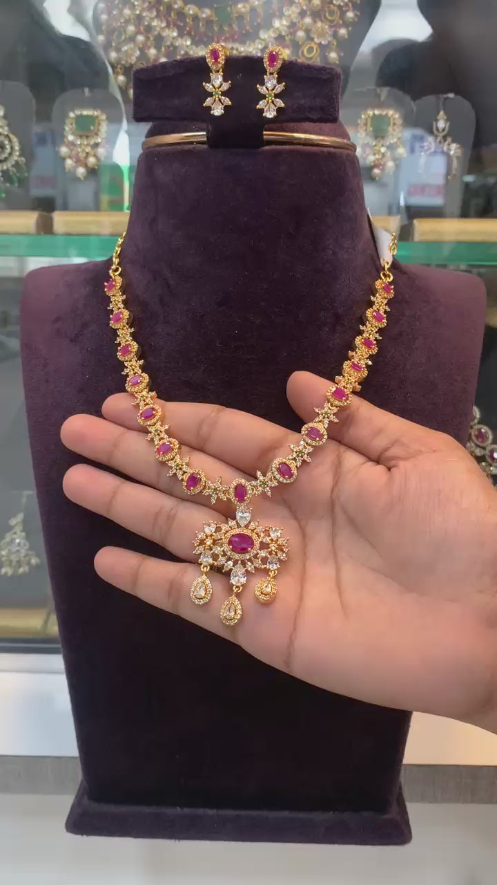 Beautiful short necklace with pink stone and guttapusalu hangings