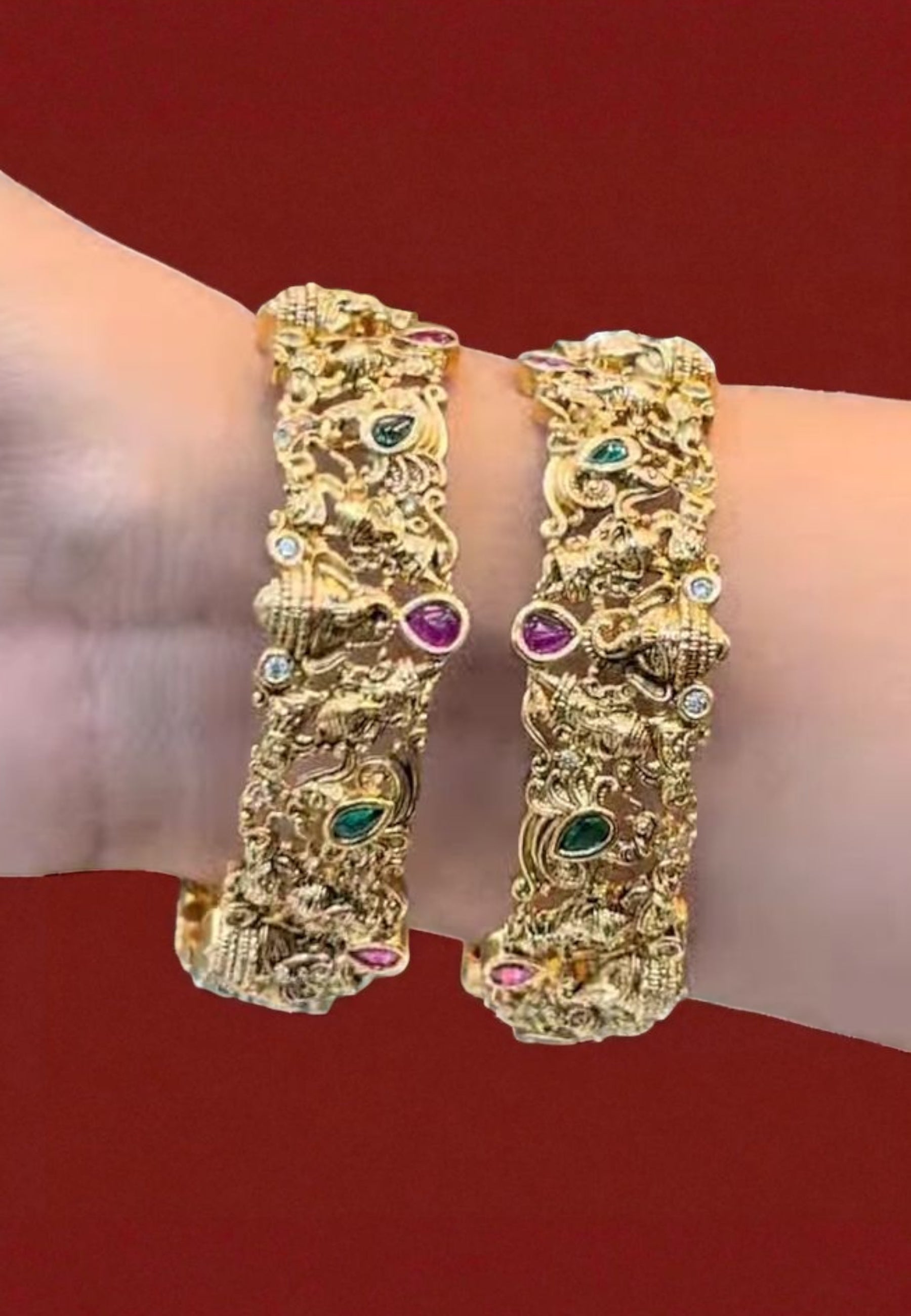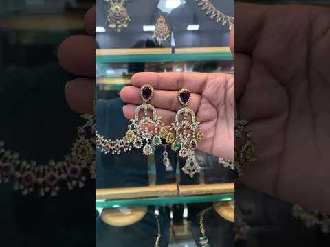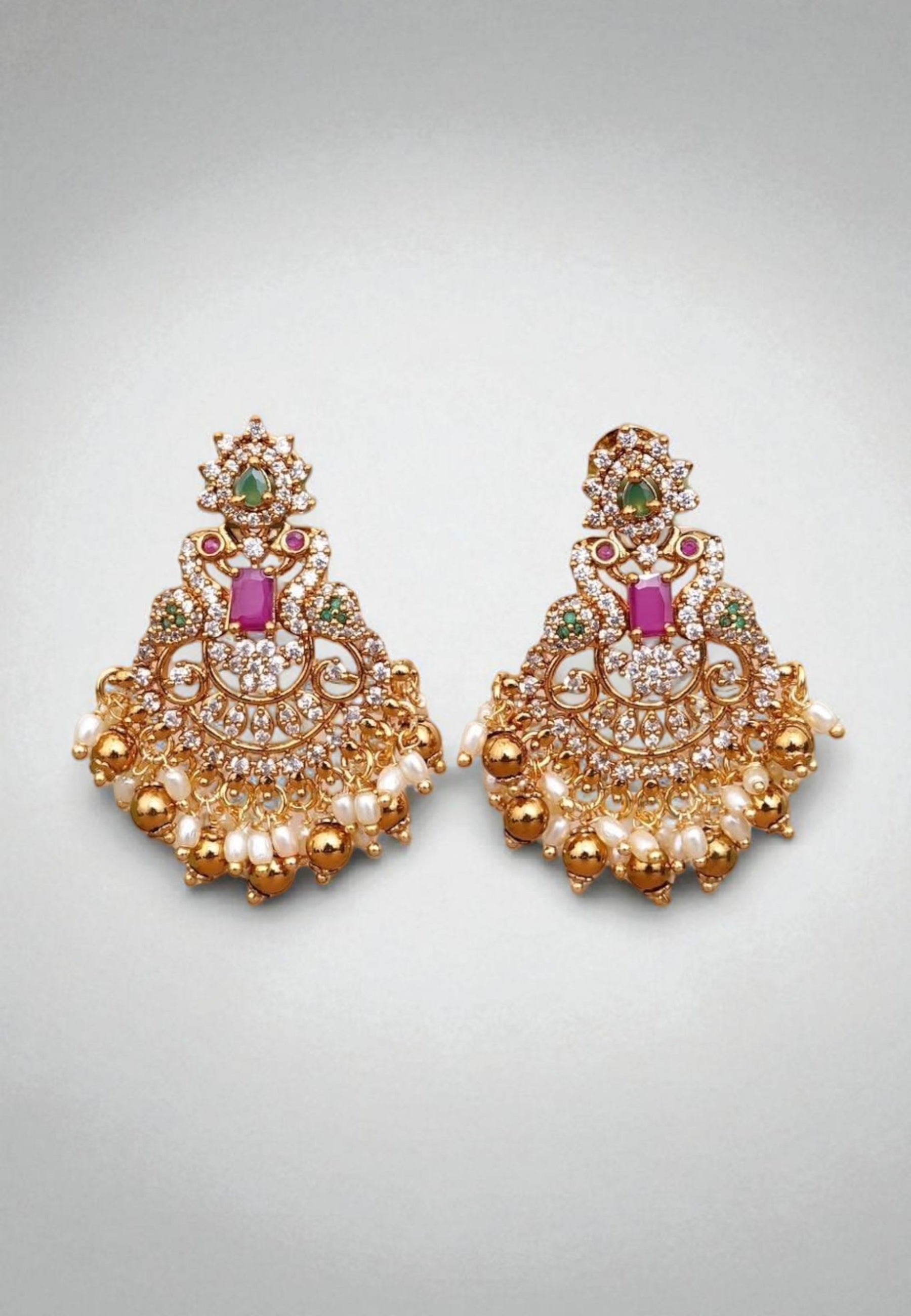 Beautiful jumkhas with green and pink stone and guttapusalu hangings