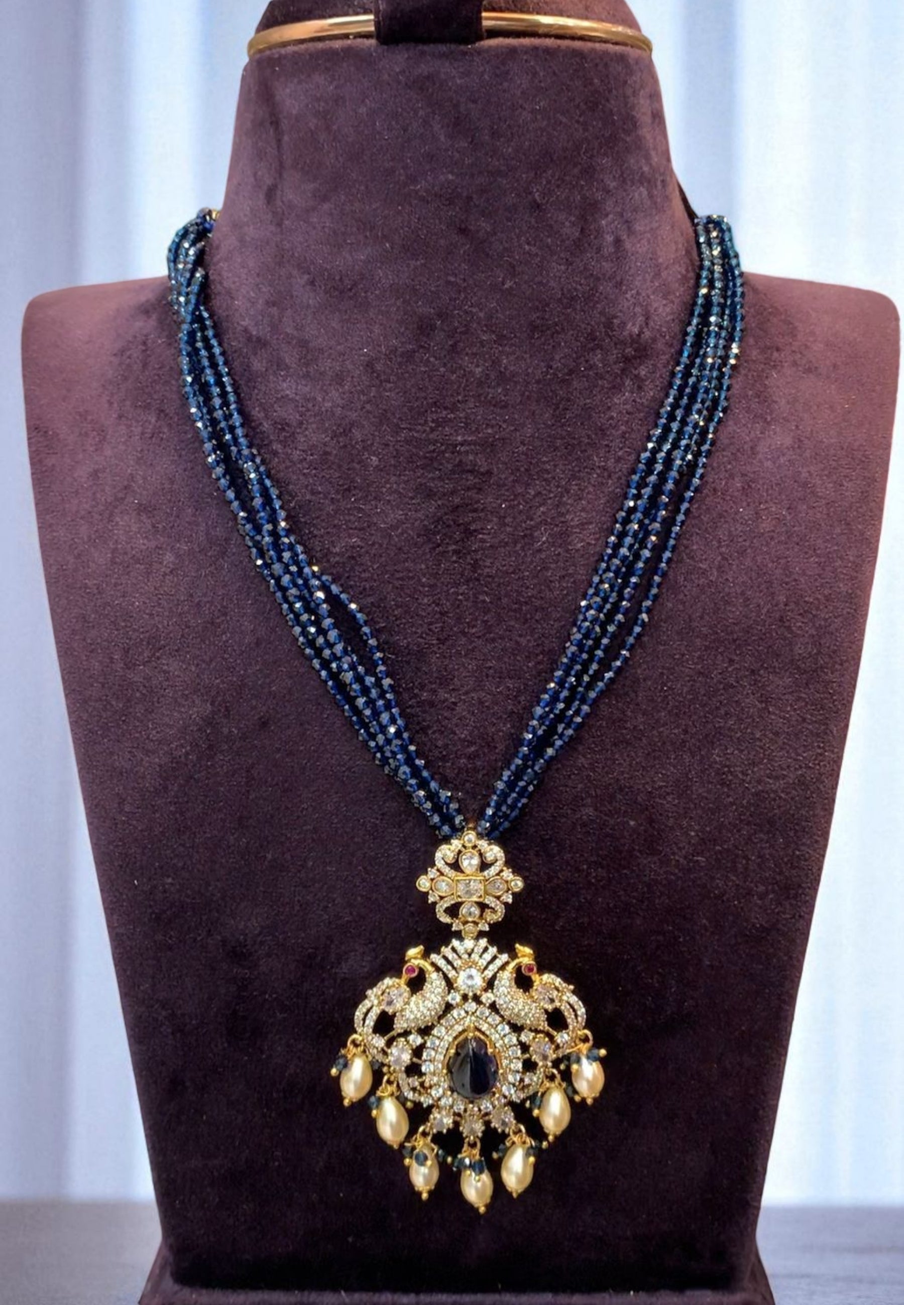 Beautiful pearls chain with royal blue beads and stunning pendant