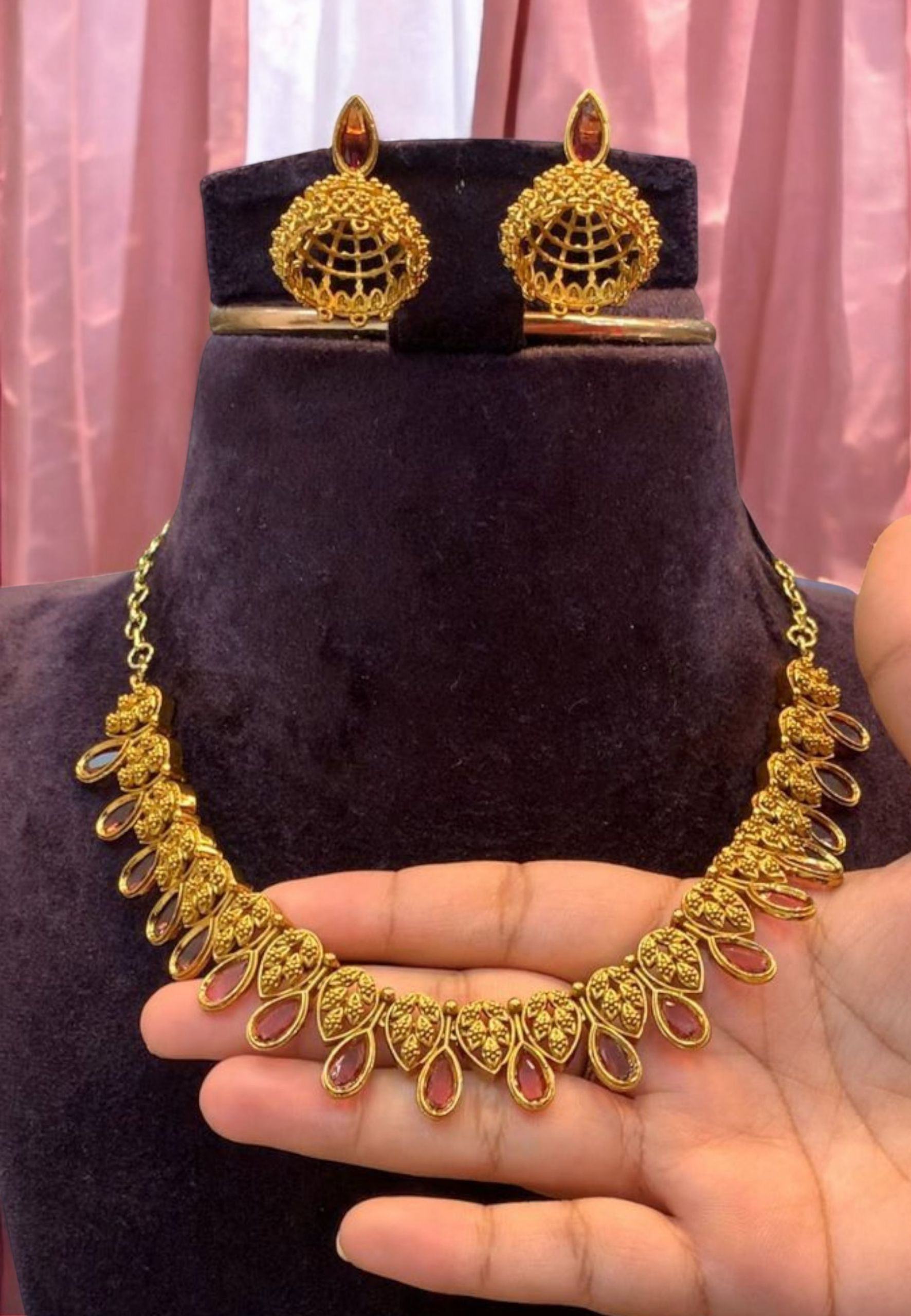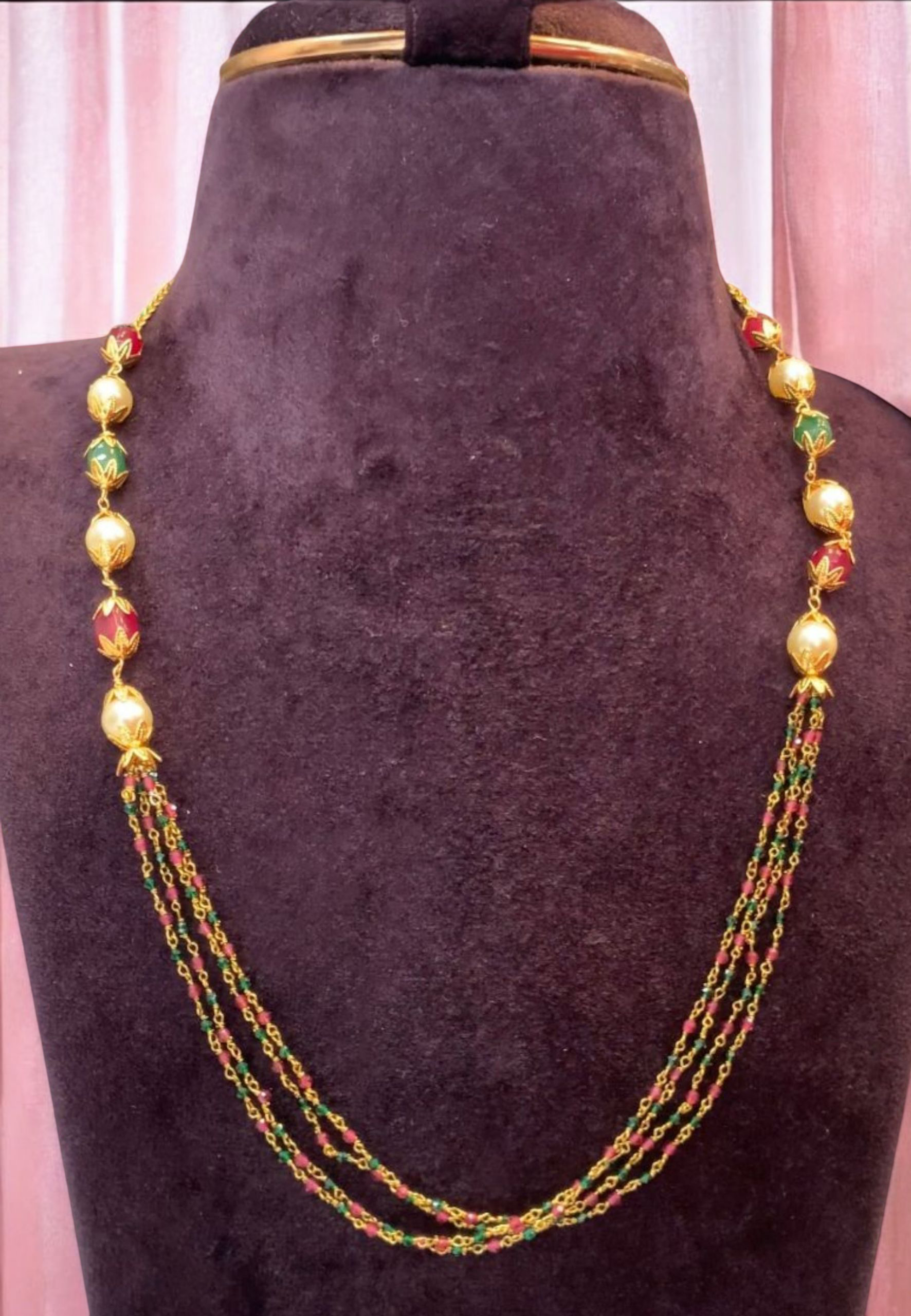 Beautiful invisible chain with green stone and guttapusalu hangings