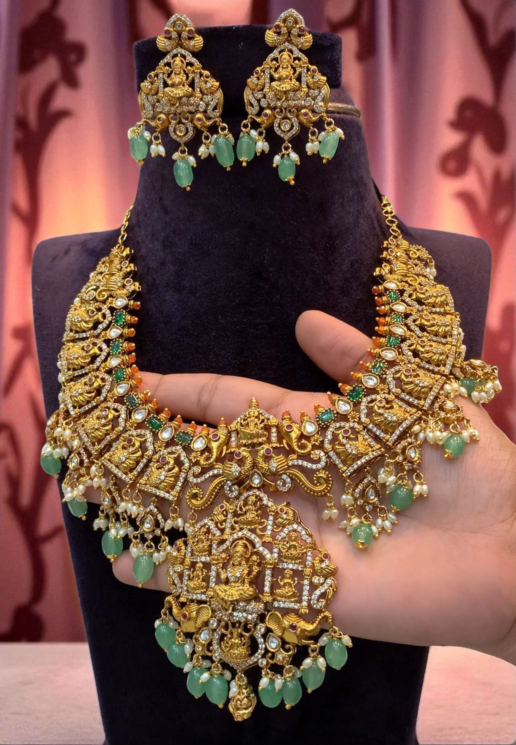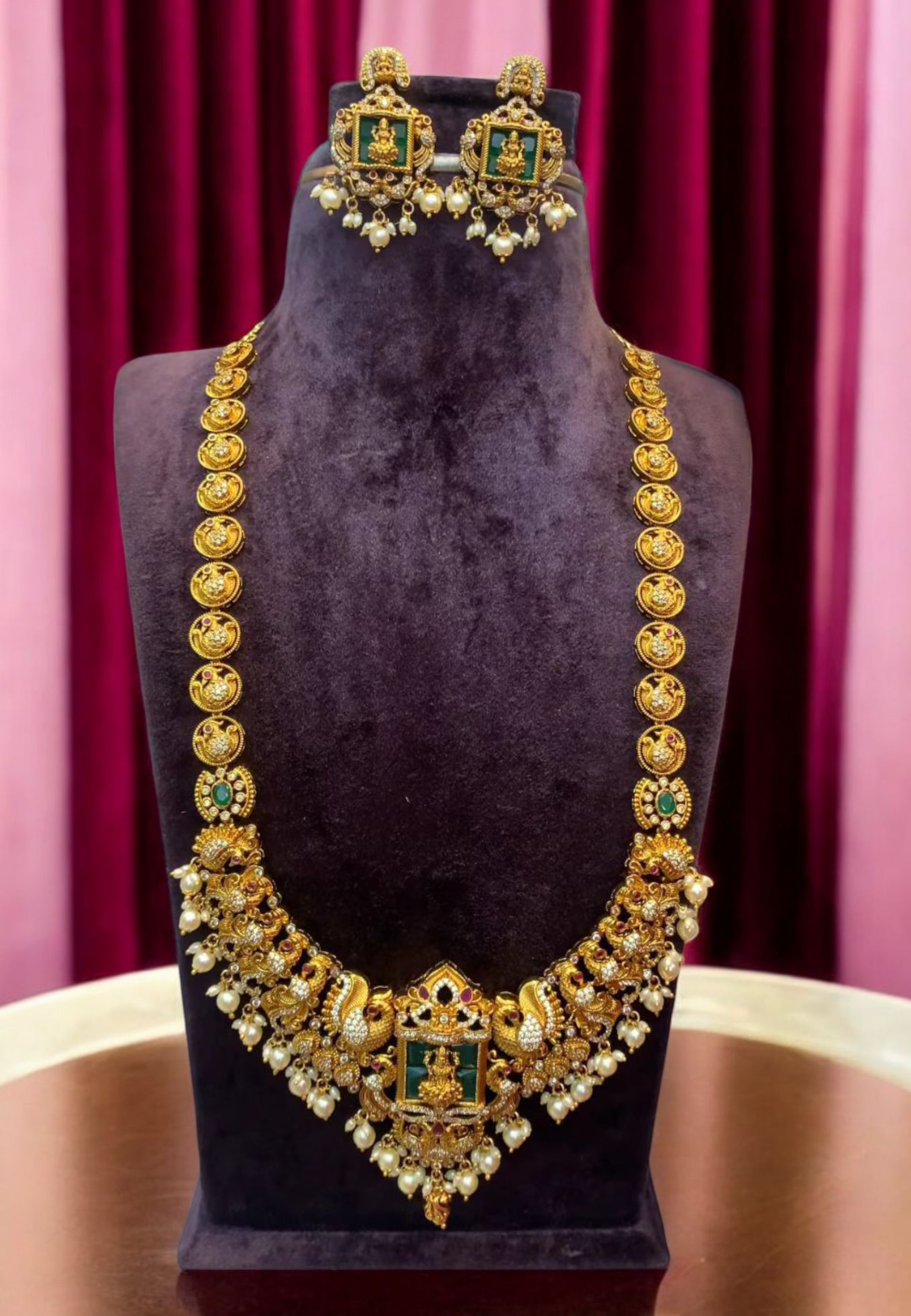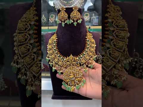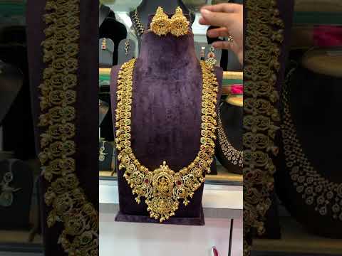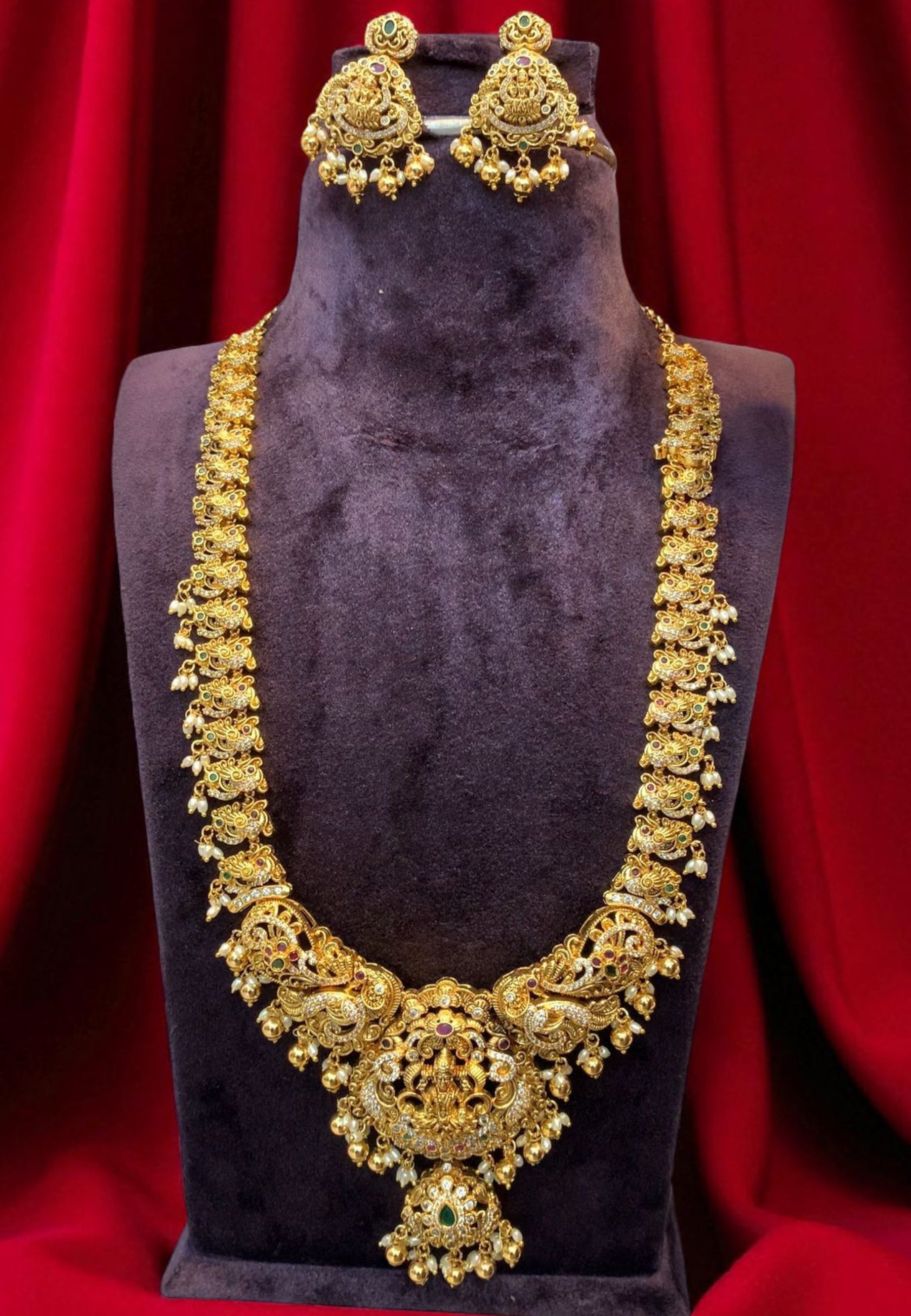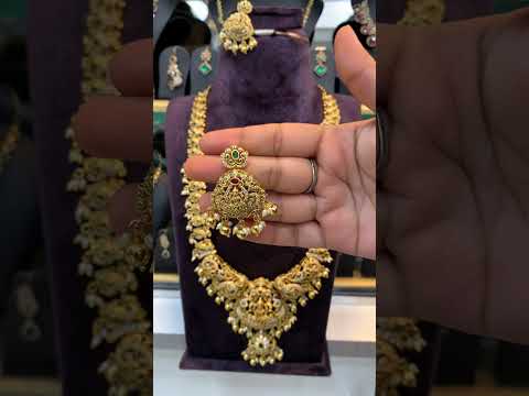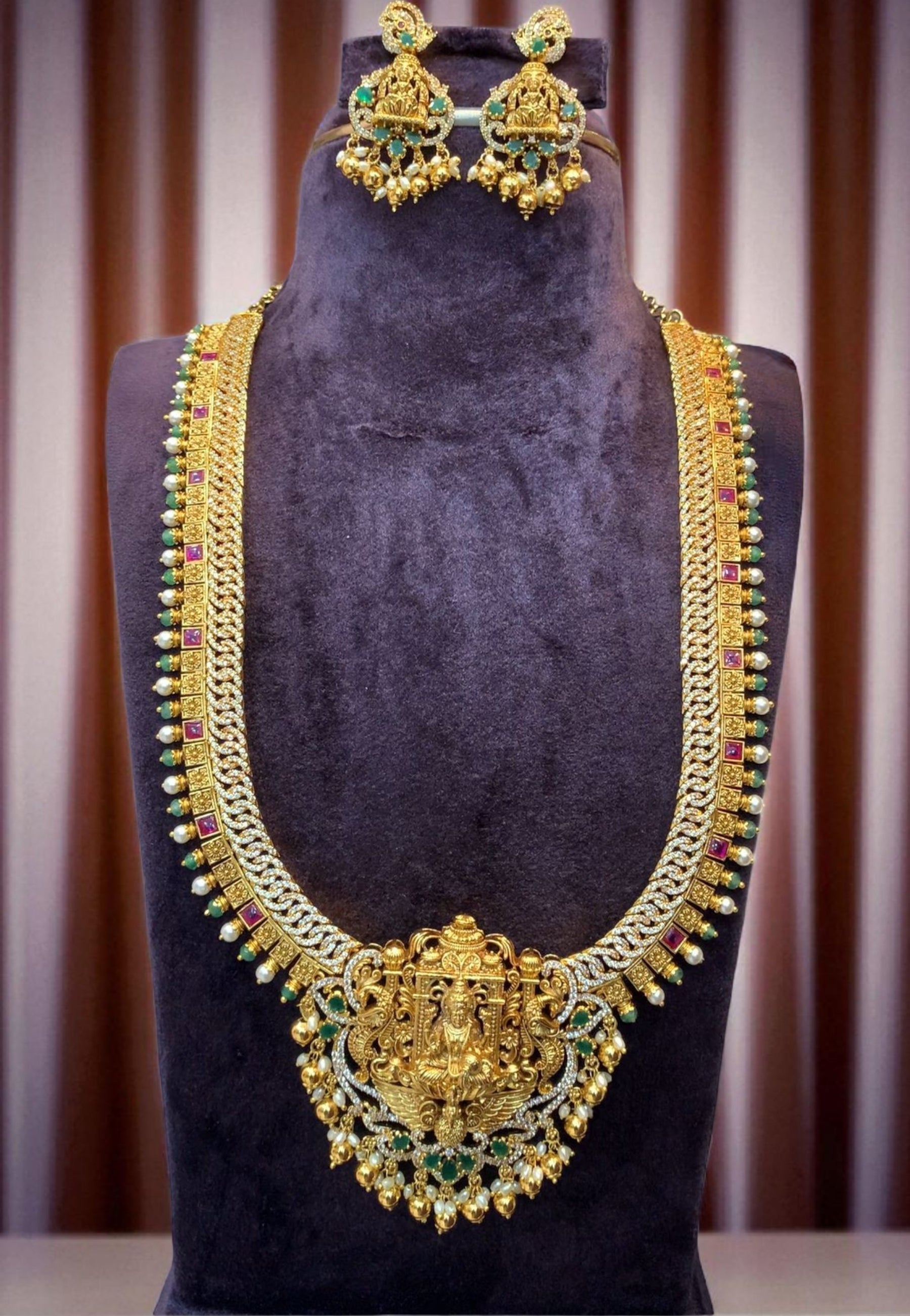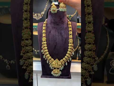 Beautiful nakshi long haram with god Laxmi Devi motive and guttapusalu hangings