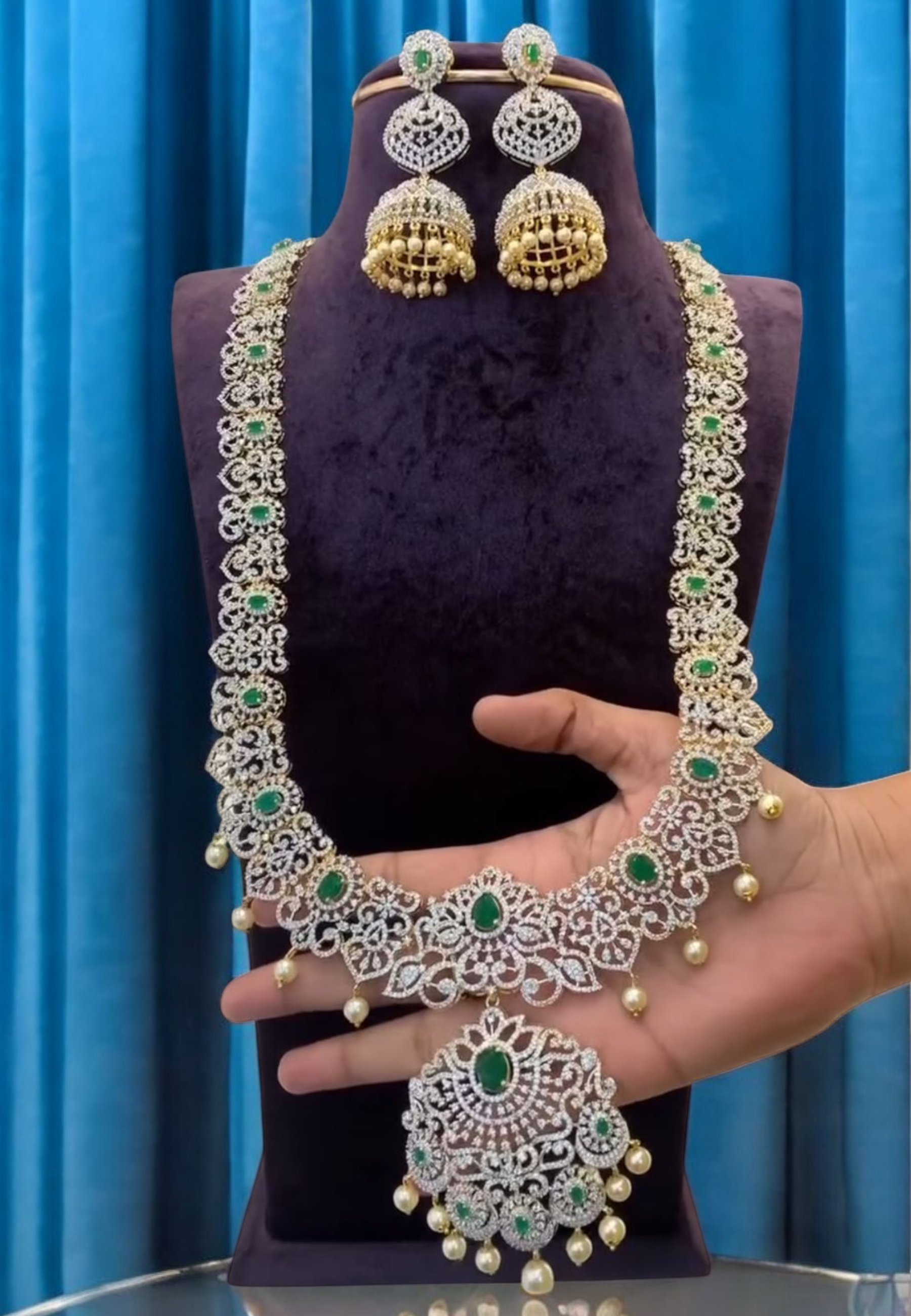 Traditional bottumala long haram with green stone