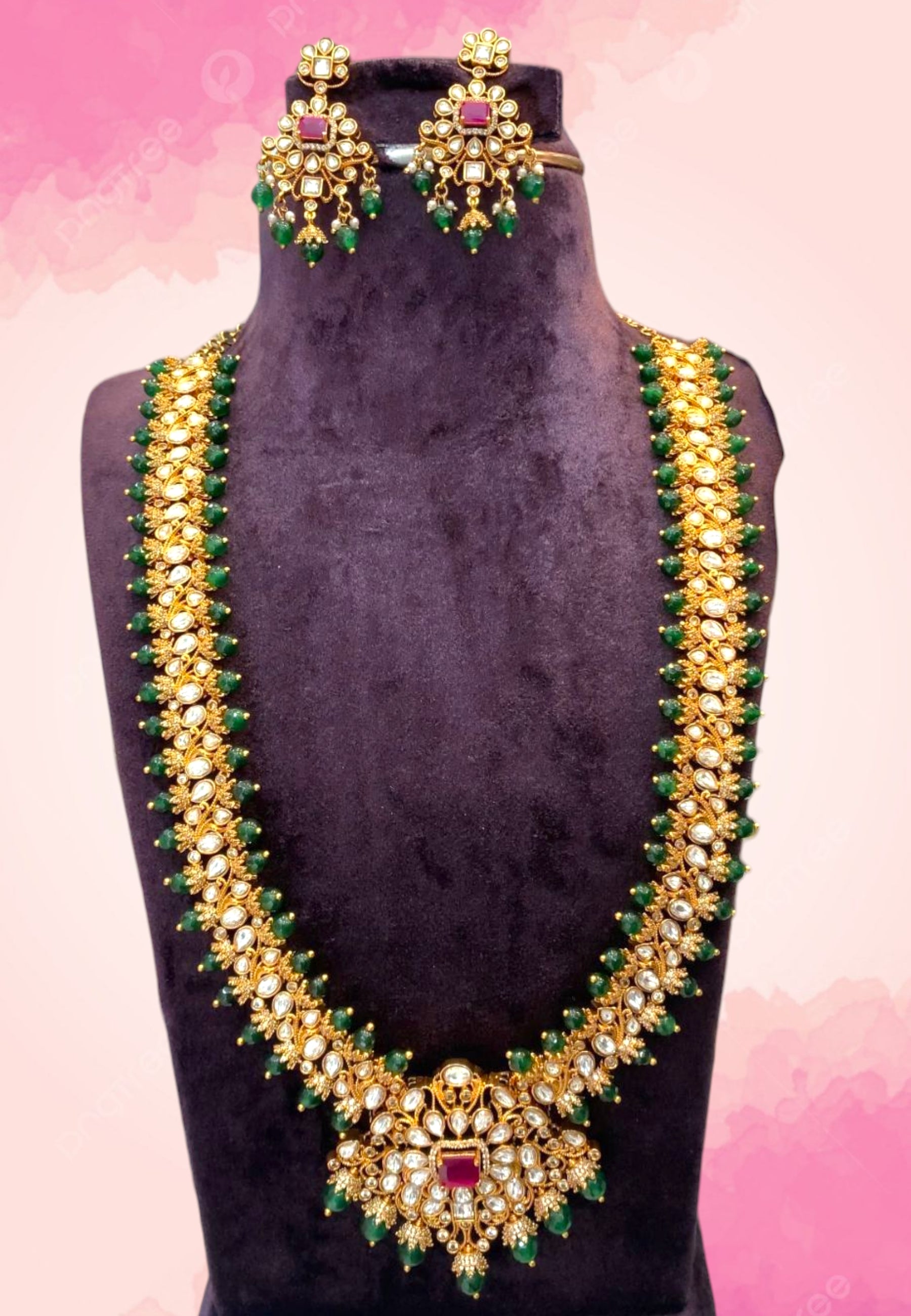 Beautiful gj polish long haram with green stone