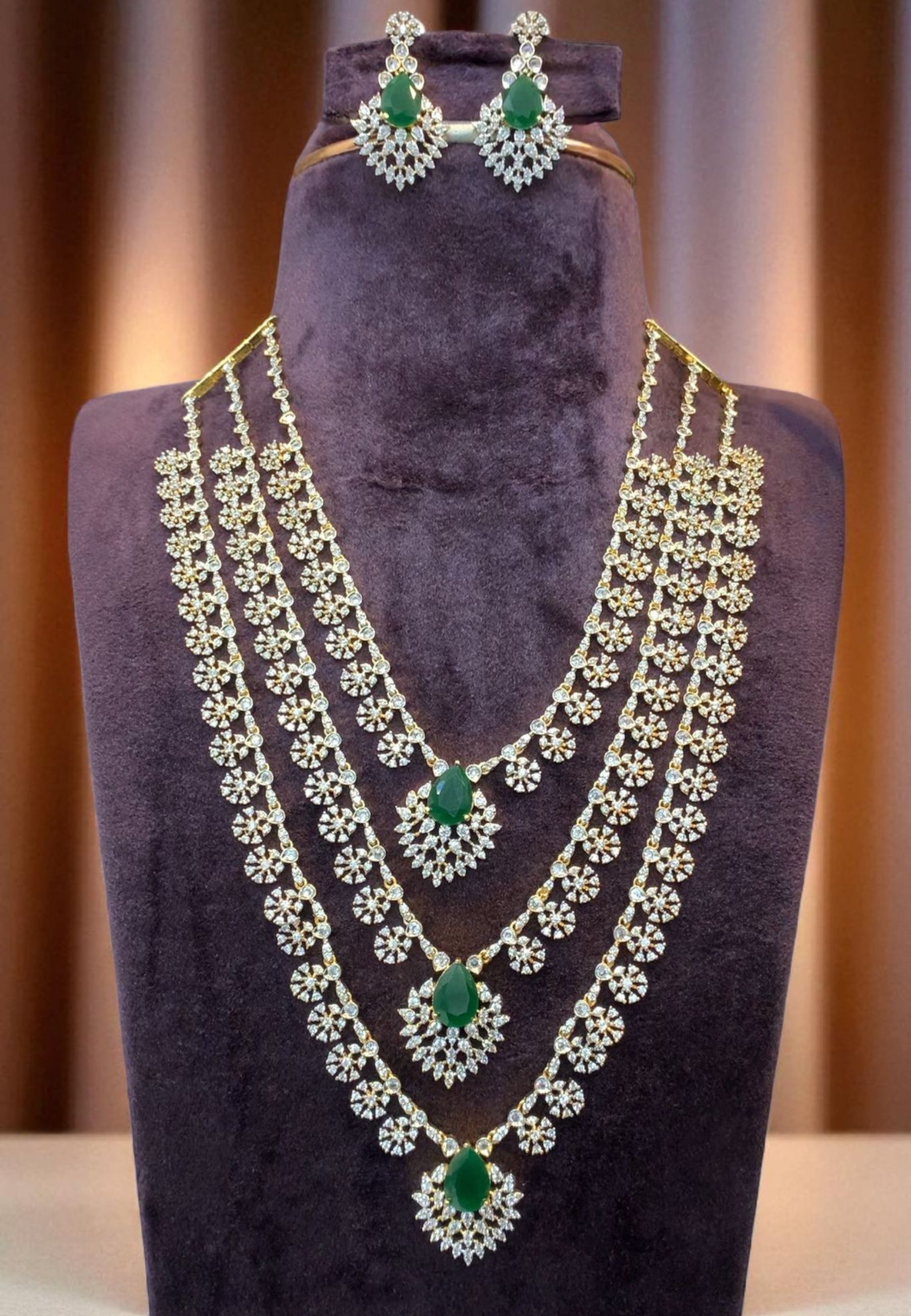Beautiful three layer gj polish long haram with green stone