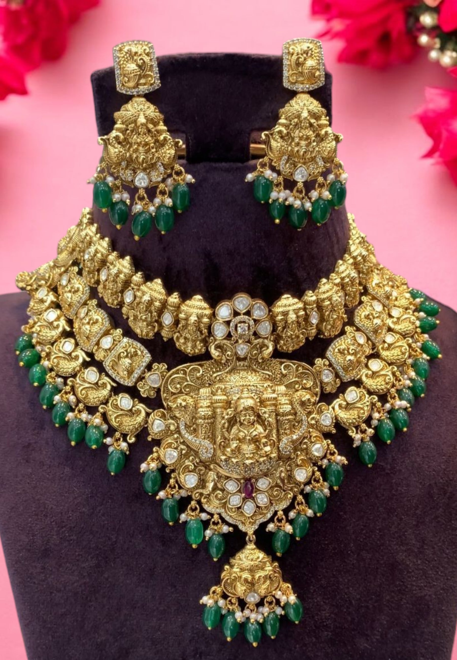 Beautiful 3D nakshi haram with green Beads and guttapusalu hangings