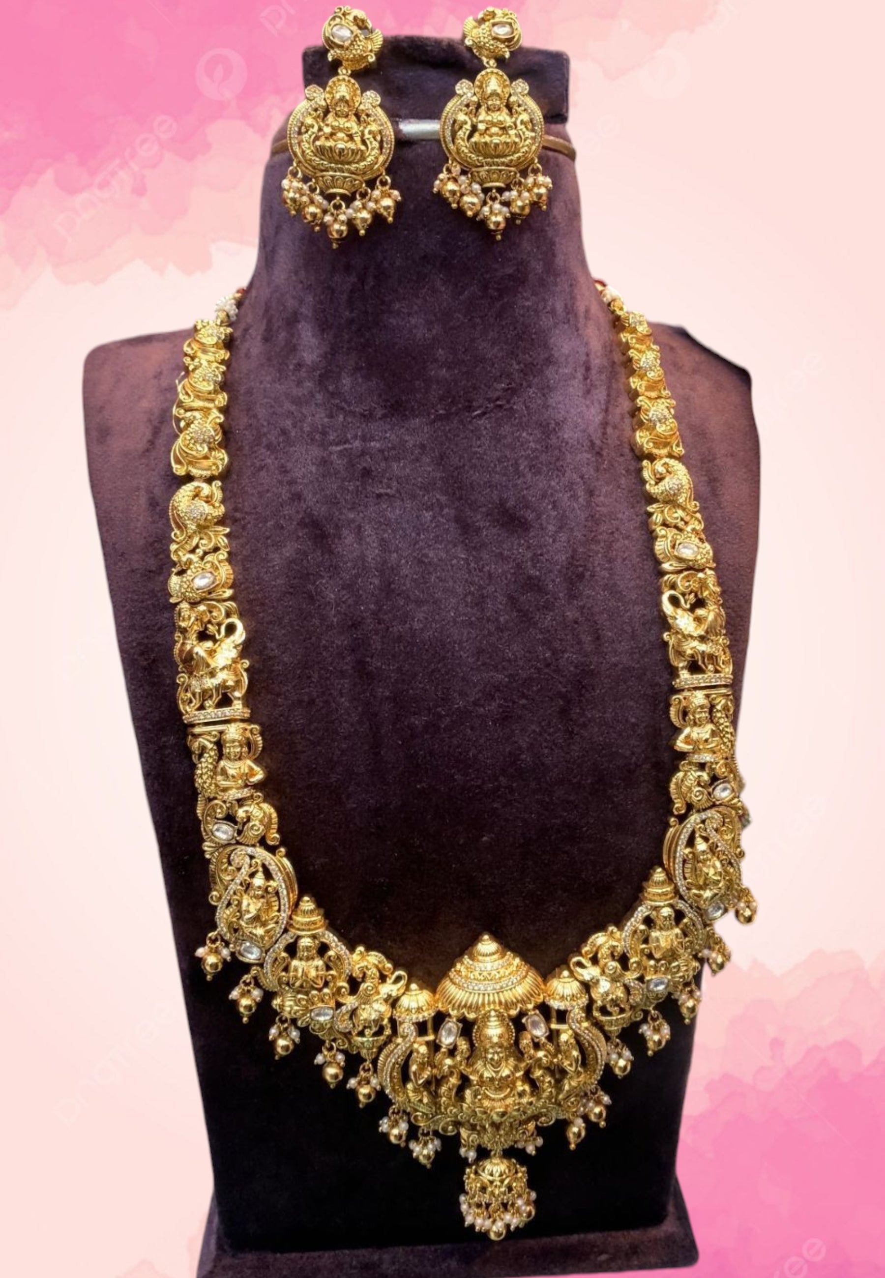 Traditional 3d long haram with Gold finishing and guttapusalu hangings