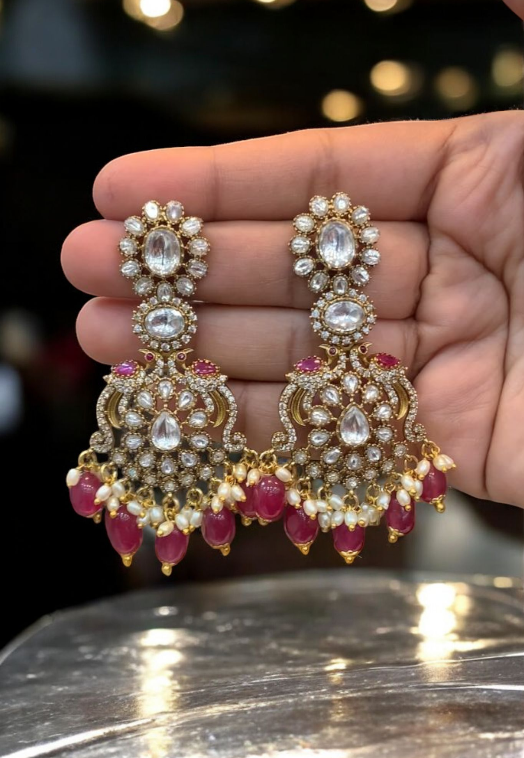 Beautiful earrings with kundan stone and uncut stone