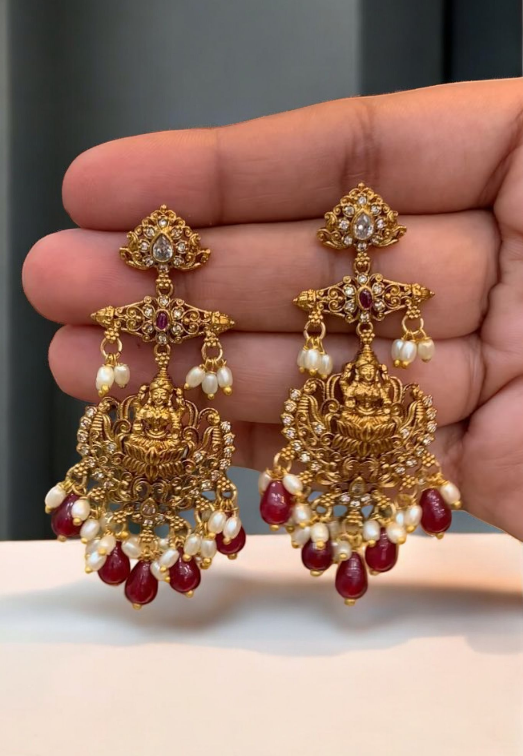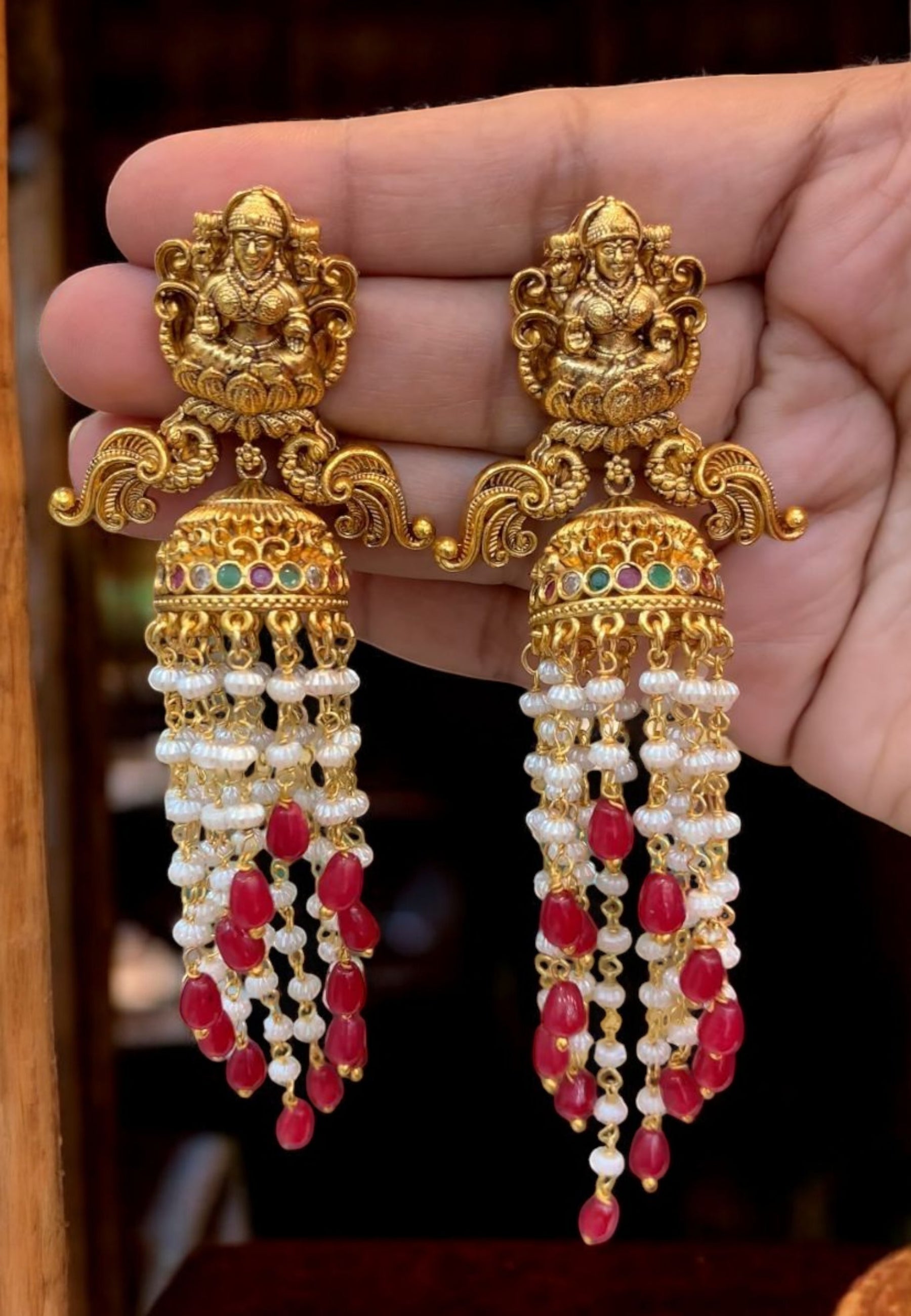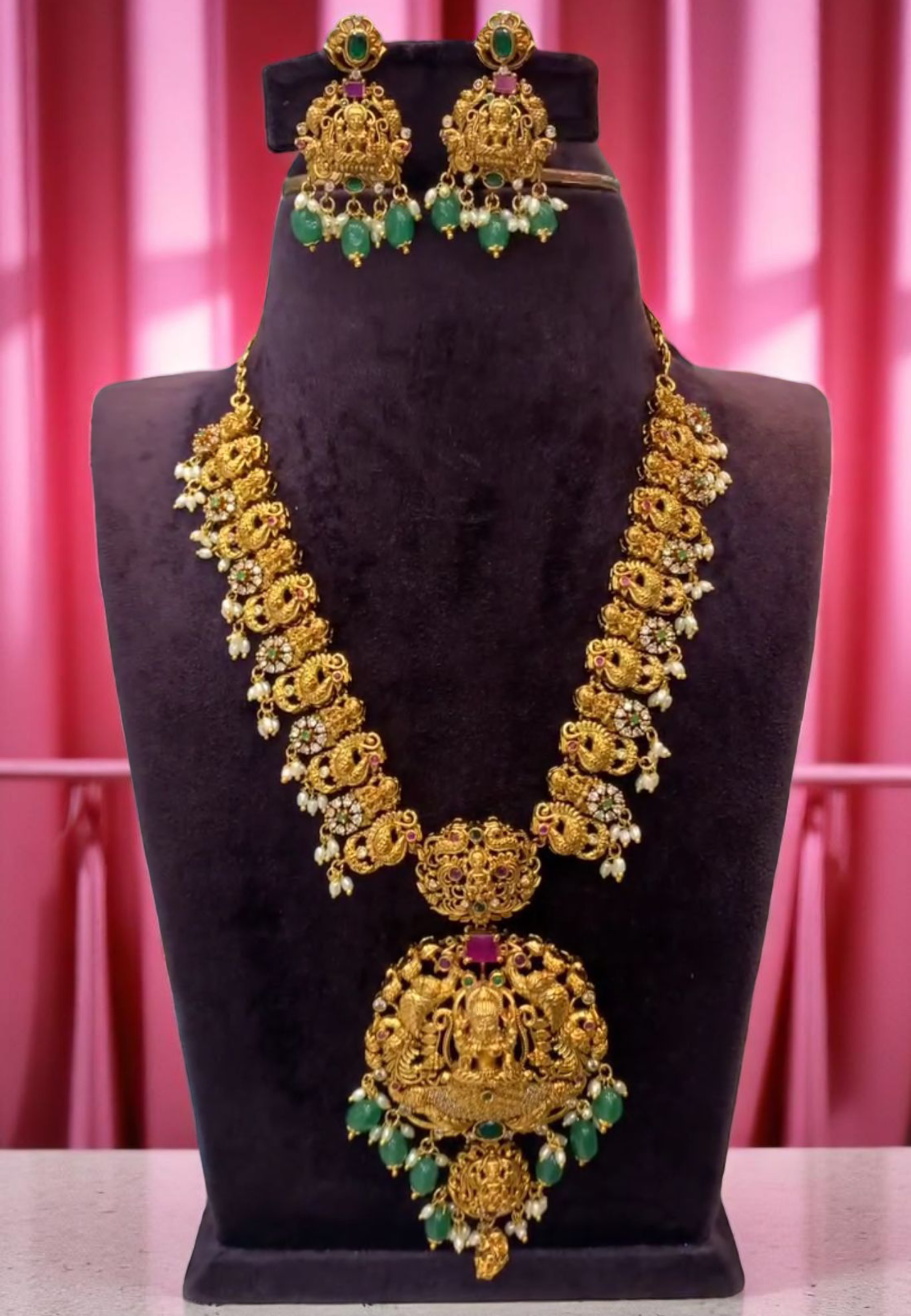 Kanti short necklace with God laxmi motive and guttapusalu hangings -pairing with beautiful earrings