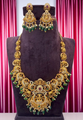 Traditional mini haram with peacock design and green guttapusalu hangings -god laxmi motive locket