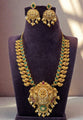 Beautiful short necklace with green stone and Laxmi Devi motive